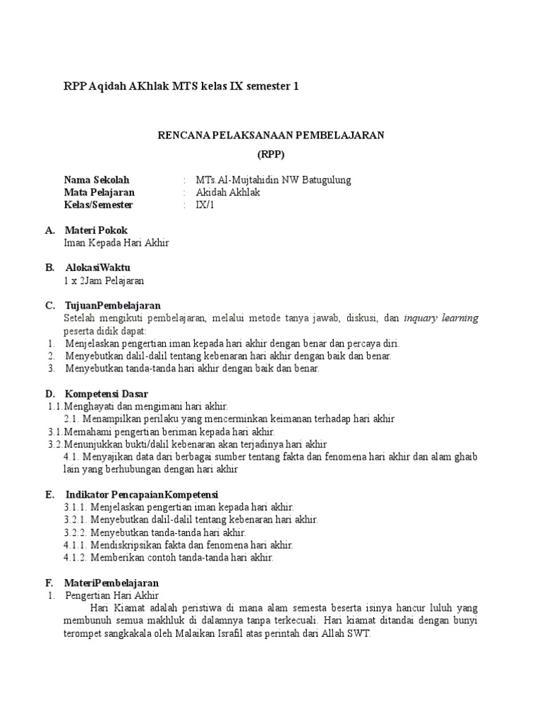 17+ Rpp Akidah Akhlak Gif. Rpp dan silabus aqidah akhlaq mi kelas 5. Dengan adanya rencana pelaksanaan pembelajaran yang dimiliki setidaknya dapat diketahui arah.