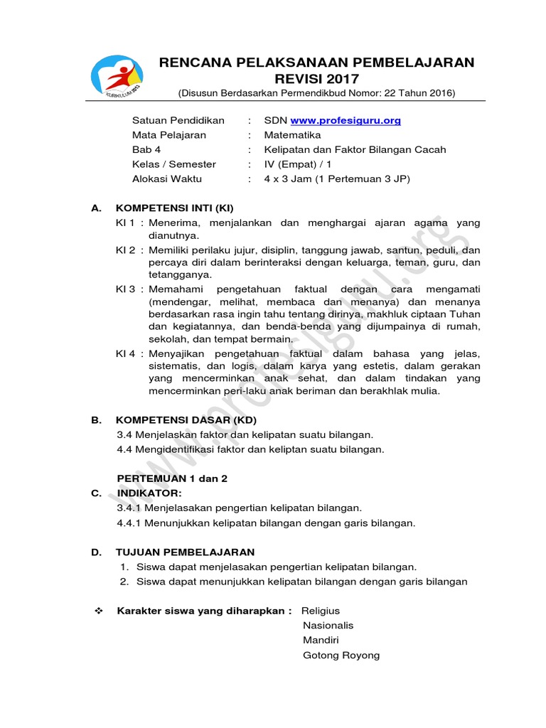 Segera persiapkan rpp matematika kelas 4 kurikulum 2013 revisi 2018/2019 untuk semester 1 dan semester 2. Rpp matematika kelas 4 (sekolah dasar) madrasah ibtidaiyah (mi) revisi 2020 ini sudah sesuai dengan se no 14 tahun 2019 tentang penyederhanaan rpp. Menjumlahkan dan mengurangkan bilangan bulat. Segera persiapkan rpp matematika kelas 4 kurikulum 2013 revisi 2018/2019 untuk semester 1 dan semester 2.